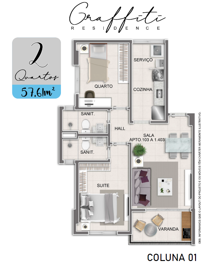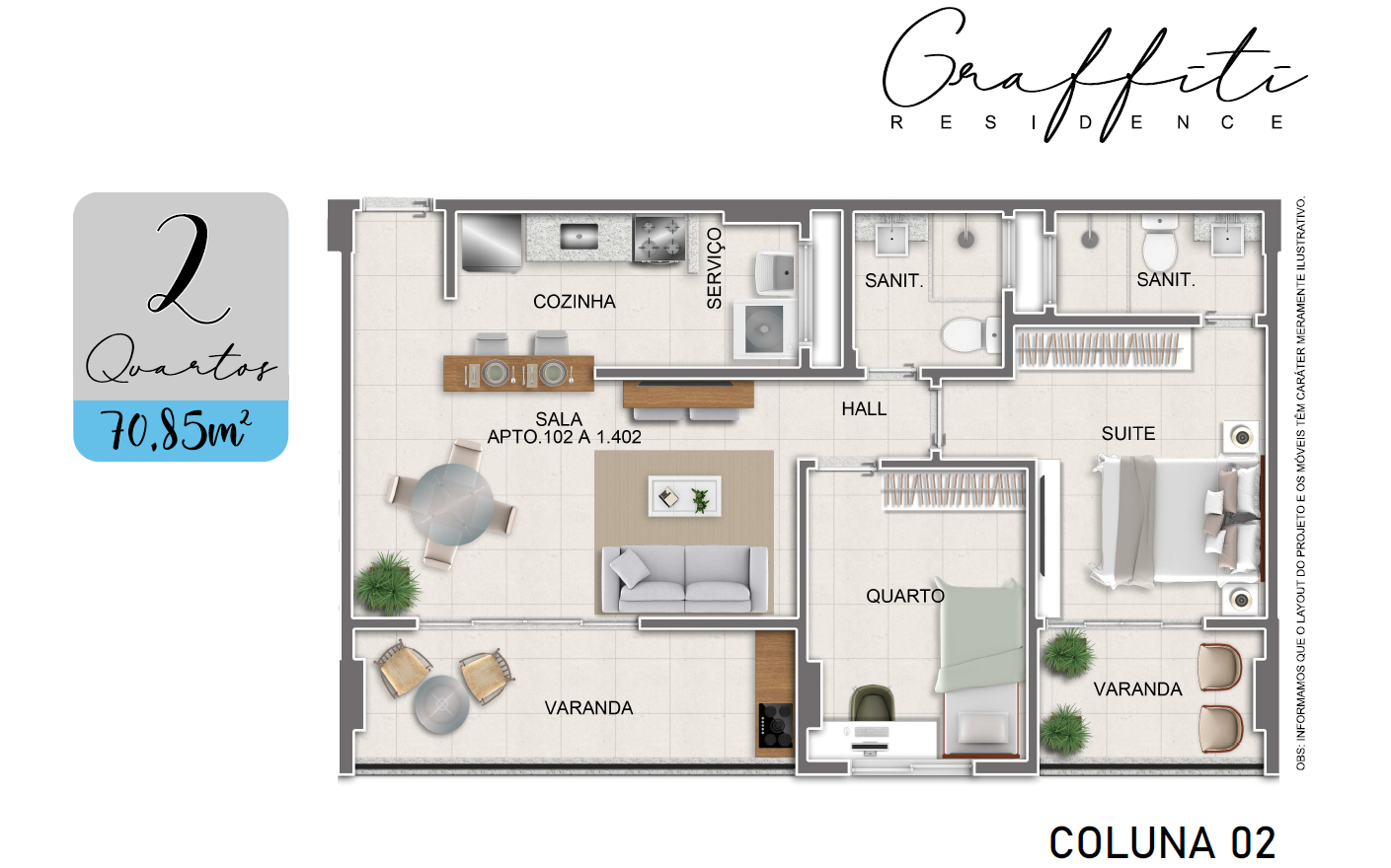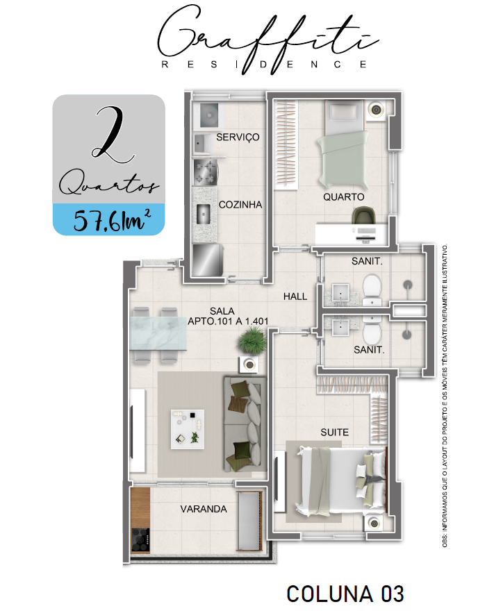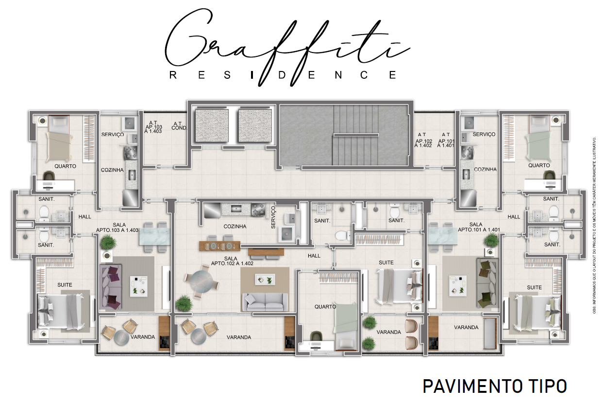 Torre Única – 3 aptos 2/4 por andar – 14 pavimentos tipo;